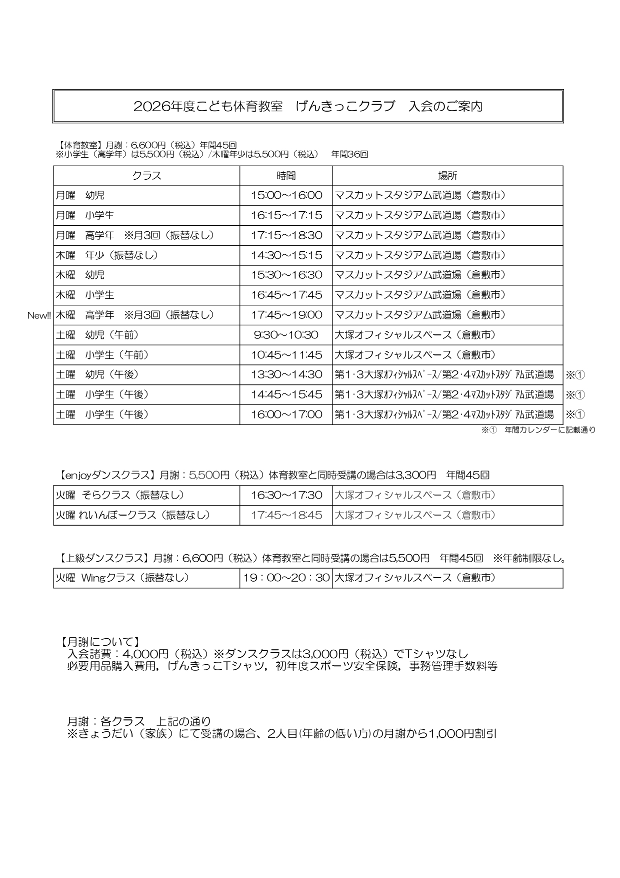 各クラス毎回2名ずつ無料体験を受け付けます!
